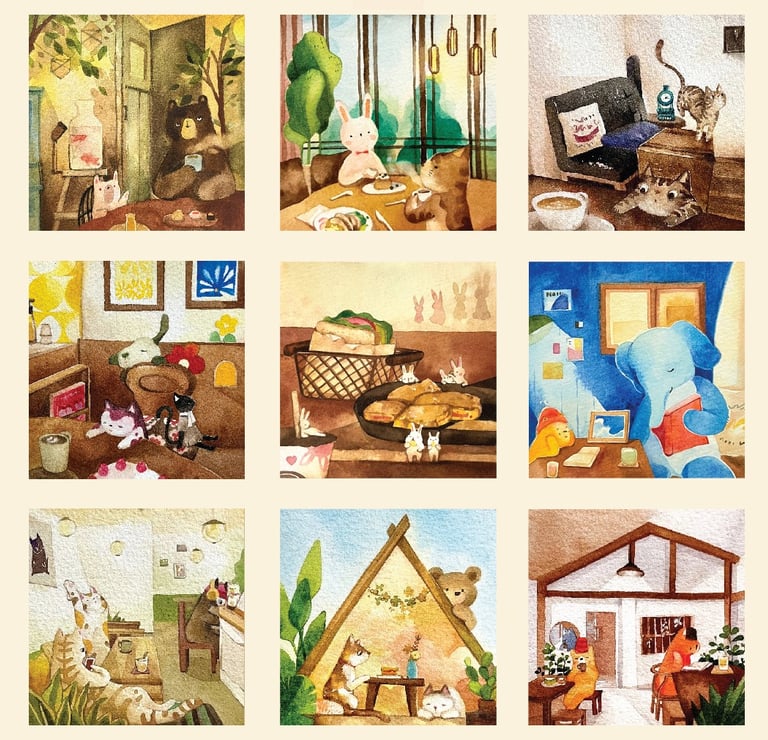 I've always wanted to draw cute animal characters, and they have beautiful interiors.